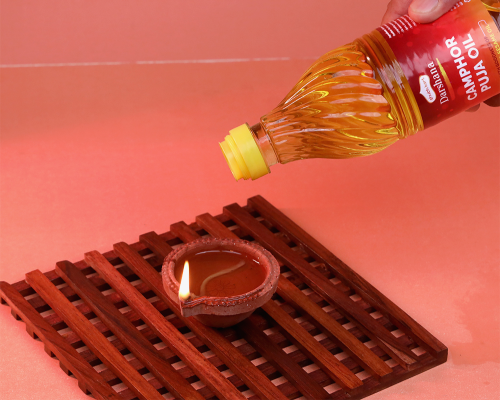 Specially crafted for diyas, Darshana Camphor Puja Oil with essence of Sesame